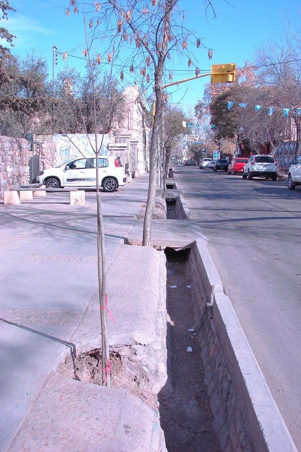 Previamente, para que estos árboles puedan vivir, el personal de Obras Municipales arregló el caño que cruza el agua de riego desde la esquina suroeste de Viamonte y Mitre, sobre la vereda del Dandy, hacia la vereda opuesta. Éste es un antiguo reclamo que la Unión Vecinal venía haciendo al municipio para posibilitar la circulación del agua por las acequias de esta calle céntrica. También se arreglaron y prepararon los nichos donde se erradicaron los viejos tocones y se permeabilizaron las acequias.