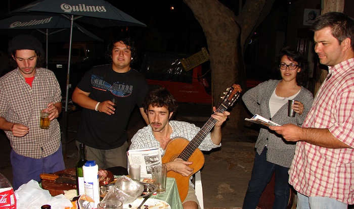Se armó el bailongo y los responsables en dar los primeros pasos fueron Chantire y Alejandra Soledad Castro.Como postre del encuentro, una guitarreada a cargo de Nicolás Sosa Baccarelli.Germán "Paila" Peña, músico de La Vaina de Shuan y dueño del Willy´s Bar, junto a Juan Manuel Muñiz, Osvaldo y su hijo. Mocho, Pepe Agustín y Alejandro CivitLuis Micheletti disfruta del talento musical de Baccarelli, observado también por Juan Manuel y el hijo del Mocho.Alberto Cabanillas es escuchado por Cacho Chantire, un vecino histórico de Chacras de Coria. Mocho y Micheletti muestran las delicias parrilleras.