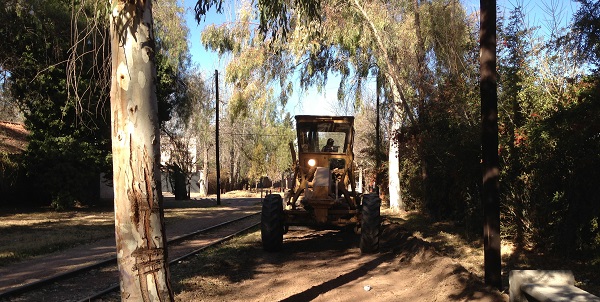 Haciendo los trabajos de arreglo del espacio verde de las vías, donde el municipio tiene proyectado hormigonar para construir la ciclovía –variando el proyecto original y aprobado por la comunidad que era por las márgenes del zanjón Río Seco Tejo- se dañaron algunos árboles como este ejemplar de eucalipto.