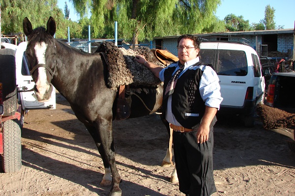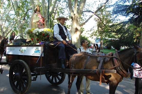 El vecino Alberto Cruz, de la Federación Gaucha de Mendoza, fue el encargado de llevar a la Virgen de la Carrodilla.Correveidile también estuvo presente: Alberto Cabanillas, María Ignacia y Adriana Sayavedra.Un amigo del Corre, quien acercó unas copas de espumante para brindar con la familia.Cachilo Púrpura en posición, listo para la foto.Cristina y el Puna Funes, entre el público asistente a la fiesta del mediodía sabatino de la Vendimia.