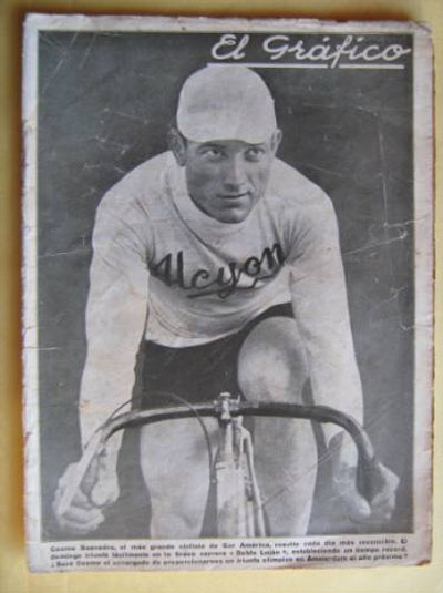 Cosme Damián Saavedra, nacido en 1901 en Godoy Cruz, aprendió a andar en bicicleta a los 18 años y a correr a los 21. De gran físico, una enorme voluntad, tenaz y porfiado como nadie, con una salud de hierro, se destacó desde sus primeras pedaleadas como un ciclista de punta y de gran resistencia. Cuando Mendoza le resultó chica por la falta de rivales se radicó en Buenos Aires donde debutó con un espectacular triunfo en las 10 Horas a la Americana en equipo con Antonio Del Gesso. Mas tarde ganó en seis oportunidades la Rosario-Santa Fe y también seis veces una de las pruebas más importantes del país y que todavía se disputa: la Doble Bragado de la que resultó vencedor en 1924. Se clasificó campeón argentino de resistencia en 1926, 1931 y 1933 (en los dos últimos escoltado por su hermano Remigio) y en otra demostración de su increíble capacidad fue campeón rioplatense de ruta entre 1926 y 1930. En 1933 se clasificó campeón argentino de velocidad pura.