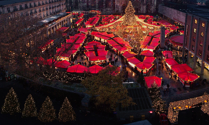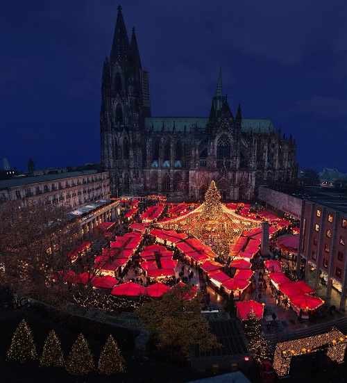 El tradicional Weihnachtsmärkte alemán (Mercados de Navidad) atrae a visitantes de todo el mundo y se remonta a la Baja Edad Media. Todas las ciudades y pueblos cuentan con su propio mercadillo, aunque uno de los más encantadores se lleva a cabo frente a la colosal catedral de Colonia. Uno puede perderse en los pasillos de los puestos en forma de cabaña y adornados con luces brillantes, y descubrir las delicias tradicionales que ofrecen los comerciantes: golosinas, panqueques de papa, dulces de mazapán, el famoso vino caliente especiado, galletas navideñas de diferentes variedades, salchichas alemanas artesanales y castañas que se asan sobre un fuego abierto, entre otras. En el mundo son pocas las celebraciones que pueden competir con el espíritu navideño que transmiten estos mercados.