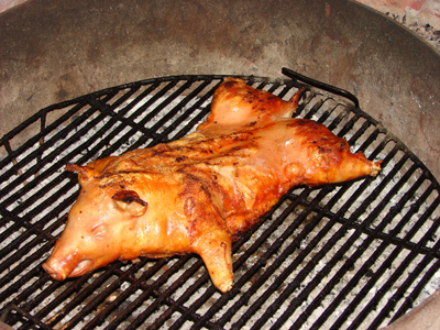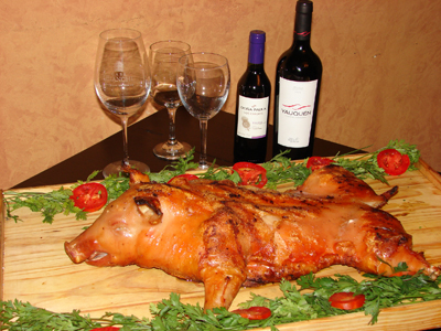 Curiosos, le preguntamos al responsable del restoran, Gustavo Bertoni, cómo se prepara un cochinillo. Y él, mientras va adobando y preparando lentamente este manjar, va desgranando los secretos de su cocción. “El cochinillo es el verdadero lechoncito mamón. Nosotros lo aliñamos bien a lo criollo, con todos los ingredientes a disposición en la cocina. Cuando tiene las horas de fuego necesarias, el cuero queda bien crocante y el cochinillo tan tierno, que se corta con el borde de un plato de porcelana”.
