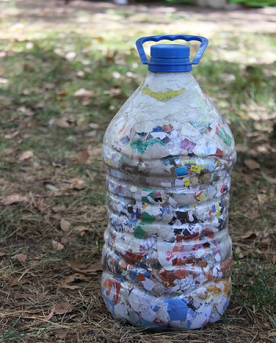 2) Rellenarla con bolsas plásticas, plásticos, aluminio, colillas de cigarrillo