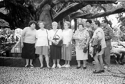 Inés Guldberg, Nelly Angelelli, , Silvia Savoy, Olga Lanatti, Egidio Di Doménico y bajo el cartel que amablemente les confeccionó el vecino Ricardo Collovatti.