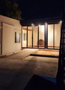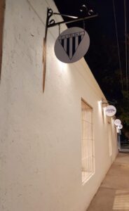 Con un estilo «vintage» de club social, se homogeneizaron las aberturas y se remodelaron las veredas. En el interior, el trabajo junto al arquitecto Gustavo Trabasso permitió recuperar los pisos de baldosa originales —piezas obtenidas incluso a través de anticuarios— y los techos de caña. Un detalle distintivo de esta obra es el mantenimiento de paredes con adobe visto, permitiendo que la historia viva de la construcción conviva con quienes hoy disfrutan de sus instalaciones.