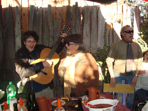 El Japonés agarró la guitarra inmediatamente después de hacer el asado, acompañado con Chicha París en canto y el cuyano Coco Molina al teclado.