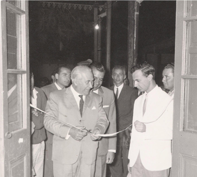 El doctor Edmundo Correas, por entonces Director General de Escuelas, corta las cintas de rigor acompañado del maestro Serafín García Sáez, quien representaba a la Comisión de Vecinos que trabajó para concretar aquella importante iniciativa.
