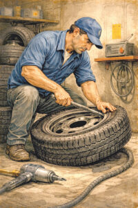 El tipo me mira un rato largo – cinco segundos, ponele – y me dice que yo soy el último que va a atender hoy, porque se tiene que ir ya al Hospital Central, que tiene internada a la esposa, y la hija lo está esperando para que la reemplace porque ha dejado a los chicos con una vecina que los puede tener nada más que hasta la una porque entra a trabajar en el “Dalvian” y toma dos micros… Lo interrumpo y le digo que no hay problema, que vuelvo mañana y él empieza a desarmar mi cubierta y en ese gesto me está diciendo que sí hay problema, que necesita la plata que me va a cobrar. No se me ocurrió decirle que le dejaba pago el trabajo y buscaba la rueda mañana.