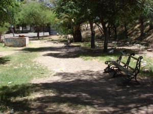 Plaza vacía, falta de riego, falta de placero, bancos rotos, raquítico caño de agua roto con una permanente pérdida de agua potable, cisterna vacía, sin bomba y con una peligrosa tapa de chapa plegada y oxidada, columpios sin asientos ni cadenas, basura entre altos pastos, pozos por todos lados, mástil sin cable, canteros secos, deteriorados y sin flores, falta de sendas peatonales y un importante etcétera es lo que los vecinos fundadores ven como resultado de su obra y sus esfuerzos de casi treinta años de trabajo en la Plazoleta Dr. Levy.
