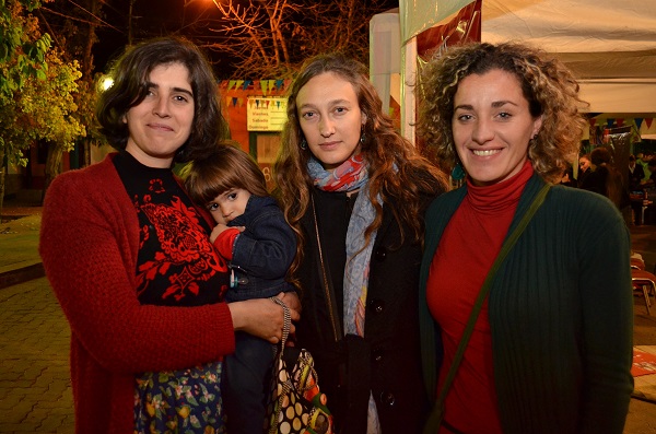 Betty y Alicia, las chicas de Manos Morenas.Cristian Puldain explica las cualidades del vino de Tommy Hughes.El puesto más divertido, el del Willy's Bar.Flor de Mattons y su niña con Ana Marta Gabrielli, de la Muni y su prima.Luciano Franchetti, del peruanísimo Manos Morenas a punto del batacazo.Pali Alonso con sus hijos comenzaron a disfrutar desde el mediodía.Maridos de artistas. ¿Qué le estará diciendo Carlos Bignone -marido de la artista plástica Verónica Ohanian al marido de la otra artista del Club Cultural de Chacras, Rossana Panocchia que causa tanta gracia?