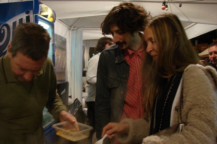 Eduardo Aveni sirve su paella a Patricia Girotti que espera ansiosa por degustar tamaña exquisitez.
