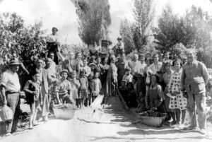 La primera nos lleva a 1938, a la cosecha de los Cocucci. Aquel día, nuestra Ángela Dorigo —flamante tercera Reina de la Vendimia— visitó a sus compañeros de trabajo luciendo sus atributos. No era una figura lejana: al igual que sus antecesoras Susana Justel y Brígida Santini, Ángela era una verdadera cosechadora. Representante de Chacras de Coria, fue la primera reina en usar capa y corona, en tiempos en que la fiesta aún no tenía carácter nacional. Falleció en 2007, pero su recuerdo sigue vivo entre nosotros.