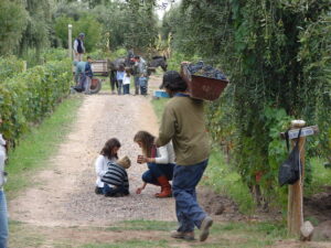La segunda escena es mucho más reciente, ya en la primera década de este siglo. Una cosecha familiar organizada por Gonzalo Pagés en su por aquellos años flamante finca de Maipú, con viñedos plantados en 1920. Allí, entre amigos y parientes, la vendimia volvió a ser celebración y trabajo compartido. “La viña se trabaja con caballo, sin remedios ni venenos, respetando su espíritu orgánico”, contaba Gonzalo.
