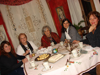 Facundo Galeano y . Marina Galeano, Ana María, Roxana Girotti y Fabiana Andaluz. Todos dieron cuenta de las excelentes tortas de las hermanas Schmidt.