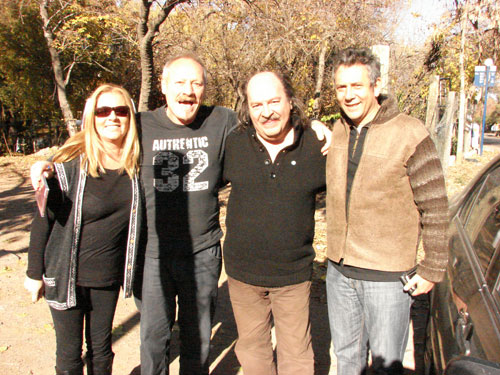 Litto Nebbia llegó a Chacras y lo primero que hizo fue llevar a su señora a la peluquería de Víctor Hugo. Alexandra, el anfitrión peluquero, el Gran Litto y Alejandro Poquet, quien también llegó a acomodarse la cabellera.