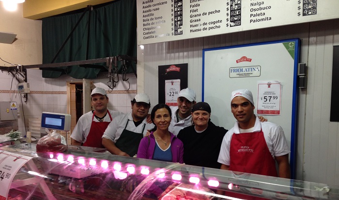 Aurora Fernández y Carina Piccioni rodeadas por los trabajadores de Benedetti: Elías, Maxi, Diego y Fabián.