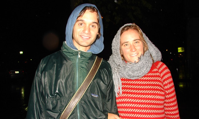 Bajo el diluvio: Jeremías Viano y Manuela Aguinaga salieron a pasear y los sorprendió la lluvia.