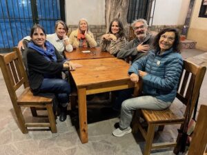 Reunión después de la obra de teatro El refinado producida por Eleonora Acosta y Mirtita Rodríguez y presentada en el centro de jubilados. Eleonora Acosta, Mema Hannon, Lora Albarracín, Mirtita Rodríguez, Tony Maslup y Raquel Sonsogni.Florencia Rosell y la supervisora Perla Guevara, dos referentes de la educación mendocina y las tareas sociales, en Jebbs del complejo Terramalva, orgullo de los lujaninos.Javier Fianta y Silvina Sebastianelli, en la joyería Carpediem del complejo Sobremonte.Helado de por medio en la Heladería de calle Piedras. Danisa Tolín incentiva a sus hijos, Cata y Cristóbal Berlanga, en tareas gráficas con lápices de colores: basta de celulares. Matías Ponce observa desde otra mesa.