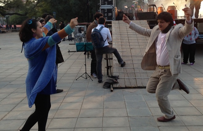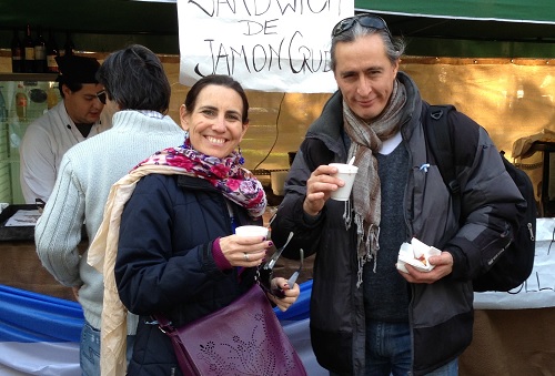 9 de Julio en la Plaza Independencia. Encontramos a Mariana Cabeza y Enzo De Lucca, reconocido bailarín de tango, probando delicias criollas.