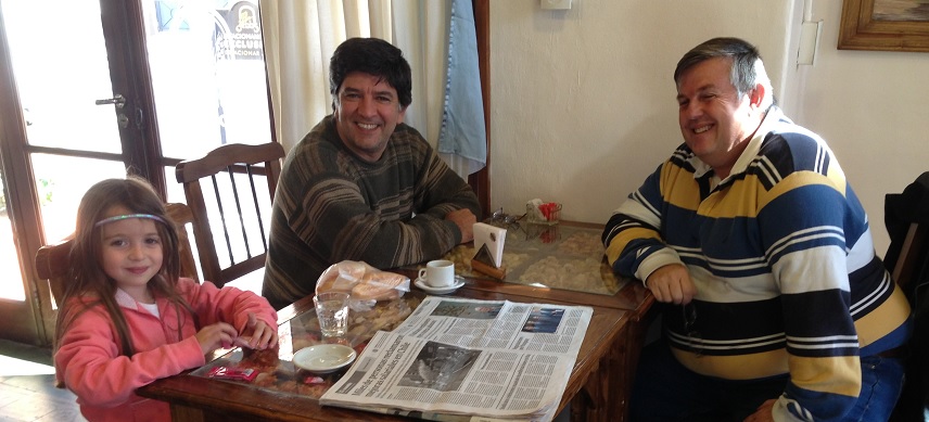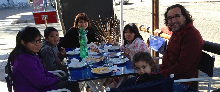 A comer! Alba, Víctor, Aracelis, Carolina, Raúl y Laura Genovesi, de almuerzo familiar en la vereda del Fundiola.
