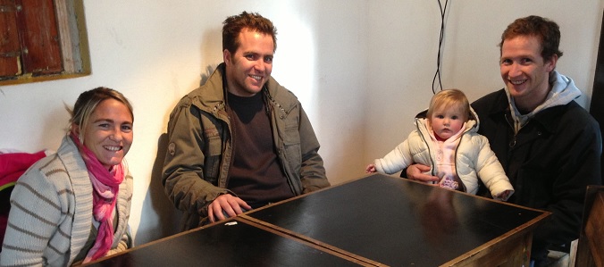 Chocolate caliente. Consuelo Marziani, Juan Pablo Pino y Juanita Belloni eligen el chocolate caliente de los fríos días de nieve en el lindísimo restorán Bandidos Rurales, de Cacheuta.