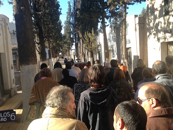 Desde Chile llegó Chalo, su nieto, y su sobrino Oscar “Cucho” Pardo, que viajó desde Alaska. Su llegada estaba programada para las 9, pero por problemas con los aviones llegó a las 17.30 directamente al cementerio, donde después de insistir, le abrieron el cajón para poder acariciar y besar a su querido Tío por última vez.
