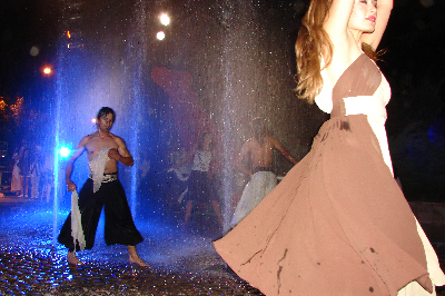El Ballet Municipal y el Ballet Suyai se lucieron, especialmente en un llamativo cuadro bajo el agua, aprovechando la fuente de la plaza.