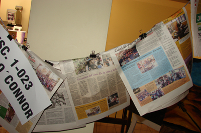 Las páginas elaboradas por los pequeños periodistas fueron colgadas en exhibición durante la muestra (Ver Correveidile Escolar. Pág. 16). Pero grande fue nuestra sorpresa al volver a la sala al otro día, ya que nos encontramos con las hojas colgadas con su borde superior doblado, de tal manera que no pudiera verse el nombre de nuestro periódico. Parece que el gran diario mendocino, Los Andes, ve en Correveidile un serio competidor, algo que en realidad, nos elogia. Y nos preguntamos… ¿no será exagerada la reacción por parte de la gente de Los Andes?