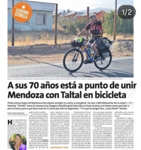 Inaugurando su séptima década de vida, cuando muchos piensan en bajar el ritmo, nuestro vecino Pedro Lemus decidió hacer exactamente lo contrario: subirse a una bicicleta y unir Mendoza con Taltal, su ciudad natal en la norteña 2° región chilena, a lo largo de 1.430 kilómetros. No fue una travesía improvisada ni una aventura turística. Fue, sobre todo, el cumplimiento de una promesa largamente postergada, nacida del amor por su tierra y de un vínculo que el tiempo y la distancia nunca desdibujaron.