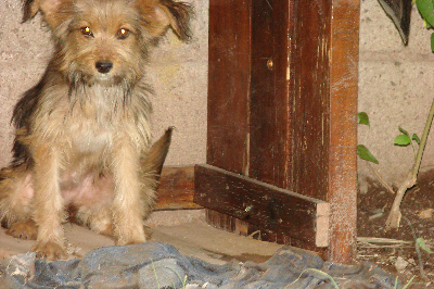 Alguien abandonó este perrito en las vías del ferrocarril.
