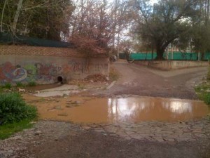 Los vecinos de la zona reclaman la urgente instalación de la pasarela prometida sobre el cauce del Río Seco , que ya no está tan seco, ya que continuamente pasa agua, lo que les dificulta el paso hacia el otro margen y así acceder hacia sus hogares sobre calle La Falda y sus alrededores.