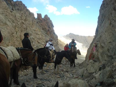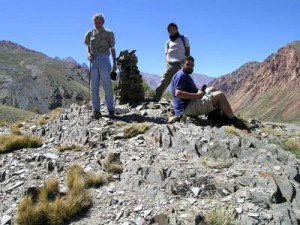 Hicimos noche, pasamos una breve tormenta de penetrante garrotillo, para iniciar el jueves 27 nuestro tramo final. A mediodía llegamos al “Portillo Piuquenes”, donde se encuentra “el fierro” que es el nombre con el que se conoce al hito que marca el límite de nuestro país con Chile a los aprox. 4500 msnm. Con fuerte viento nos tomamos las fotos obligadas, en un clima de mucha emoción, sobre todo en quienes completaron ese esfuerzo caminando la totalidad del trayecto y en quienes lo hacíamos por primera vez. Quienes lo hicimos a caballo debimos desprendernos allí de los animales para su regreso a El Manzano y continuamos el tramo final caminando.