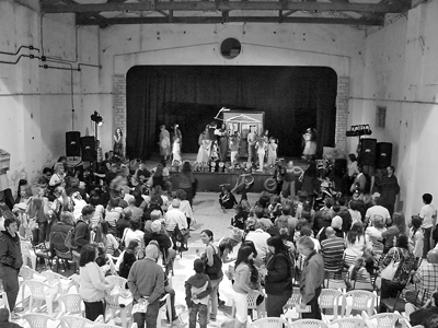 A sala casi llena, en el viejo y querido Salón Para Todos, se presentó la obra que, a lo largo del año, algunos vecinos han estado trabajando en los talleres artísticos de este proyecto comunitario. Emoción aparte significó acompañar a la vieja sala en su revivir para el pueblo.