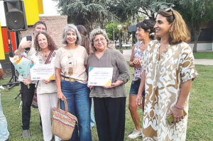 Anita Pou y Juan Ignacio Ricci en la terraza de su negocio Pontillo´s.Artesanos de la baldoza. Oscar Morales y Luis Mansilla, en plena tarea en su taller de calcáreos.El equipo de Granja Benedetti del complejo Terramalva salió a la calle en patota para inmortalizarse en las páginas del Corre.El famoso cantante Cristian Castro visitó la gran muestra Imágenes sónicas, de la diseñadora gráfica Tite Barbuzza, en el MAMM y se quedó gratamente sorprendido por la calidad del contenido.¡Feliz día Celadoras! Betty Herrera y Viviana Fernández recibieron de regalo una bandeja de desayuno por su día.Claudio Porreta, con su utilitario, y Antonio Gallego López, de Baterías Danhio, charlan en la puerta del taller.El emprendimiento Chacras Para Todos fue seleccionado para recibir apoyo municipal destinado al mejoramiento del Teatro Leonardo Favio. La selección de los proyectos fue hecha por votación de la población lujanina.Rafael Sabatini y Alberto Travieso con sus duraznos de 350 gramos, totalmente orgánicos. Cosa e’ no creer.