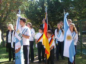 El Embajador fue recibido por los alumnos de 3º año de EGB, quienes