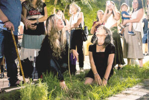 Pepa y Fernanda plantan la acacia en homenaje a su madre, la poetisa Graciela Maturo.