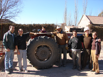 Sebastián se trajo su tractor desde Tunuyán para la tarea, Daniel el camión y Mariano la retro. Las mujeres blandieron rastrillos y el resto de los hombres palas y demás herramientas y así, en una mañana, lograron limpiar la mitad del Barrio. Queda pendiente la otra mitad, que según afirman, será muy pronto. Tan entusiasmados han quedado con la labor compartida.